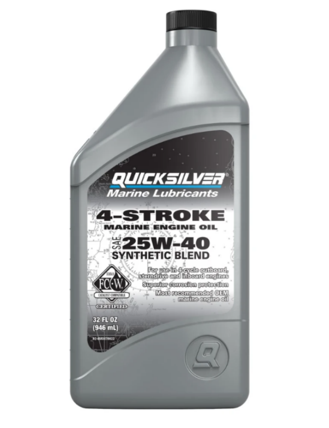 - Olej 25W40 Syntetyk polecany do stosowania we wszystkich 4-suwowych silnikach okrętowych. Jego nowa formuła posiada zatwierdzone wymagania techniczne do wszystkich zastosowań morskich 4-suwowych, w tym: silniki zaburtowe i stacjonarne silniki MerCruiser,